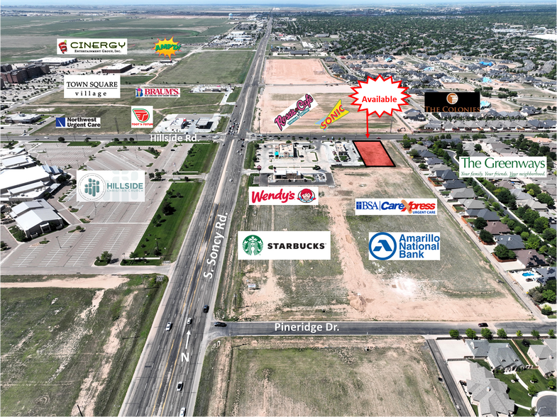 Les entreprises voisines comprennent Sonic, Rosa's Cafe, Wendy's et Starbucks, BSA/CareXpress et Amarillo National Bank qui commenceront cette année la construction de deux immeubles totalisant plus de 35 000 pi2.