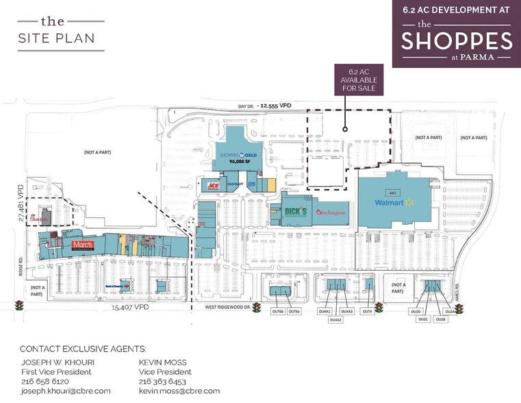 -Laissons jusqu'à 6,2 AC sur Day Drive à The Shoppes at Parme ! -Potentiel de multifamille, d'entreposage, de lavage de voitures, de vente au détail, de restaurant et plus encore ! -Day Drive a un nombre de trafic de 12 500 VPD (source ODOT) -Le Shoppes at Parma est un centre électrique de 756 000 pieds pieds 2 ancré