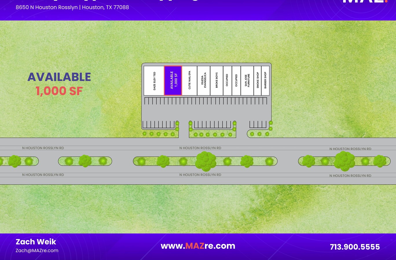 Discover an exceptional leasing opportunity at the highly visible N Houston Rosslyn Rd. This modern and versatile retail or street retail space offers an inviting storefront and ample parking for customers and employees. Situated in an area with high foot traffic, the property provides an ideal environment for businesses to thrive. With flexible lease options tailored to accommodate various business needs, this space presents an exciting opportunity for retail and street retail businesses to establish a compelling presence and engage with a diverse customer base in the bustling Houston market. Located in the heart of Houston, the Rosslyn Cypress Shopping Center offers a prime opportunity for retail and street retail tenants. Situated within close proximity to notable points of interest such as Willowbrook Mall, the surrounding area enjoys a steady flow of both local and visiting patrons. With a rich retail landscape, including a diverse array of dining and entertainment options, this dynamic area presents an enticing prospect for businesses looking to engage with a broad customer base. The Cypress area is renowned for its vibrant community and strong residential presence, making it an ideal setting for retail businesses to establish a compelling and successful presence in the thriving Houston market.