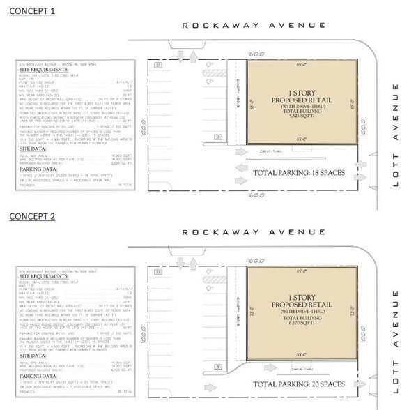 Lot Size: 16,000 square feet Available: Concept 1: 5,525 square feet, 18 parking spaces Concept 2: 6,120 square feet, 20 parking spaces Concept 3: 6,900 square feet, 23 parking spaces Concept 4: 6,120 square feet, 20 parking spaces Area Retail: Family Dollar, Popeyes, Chase Bank, Burger King, Rite Aid, Dollar Tree, and more Comments • Drive thru opportunity • Prime corner in the heart of the market • Just 3 blocks from 4 different subway lines