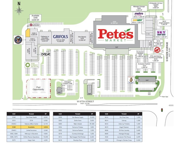 + Space Available – 0.75-acre outlot – 3,834 SF space + Dense Population – 236,000 people within 3 miles + Good Co-Tenants – Pete’s Market – DTLR – Star Beauty Supply – Oak Street Health + High Traffic Count – 47,300 vehicles per day