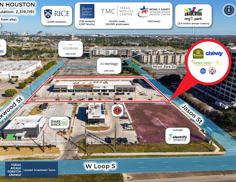 Anchored by national and regional retailers, Meyerland Crossing benefits from consistent foot traffic, synergistic tenant mix, and close proximity to major retail drivers, including Meyerland Plaza, The Galleria, and the dense surrounding residential communities of Bellaire, Westbury, and Braeswood Place. The property’s strategic positioning along the Interstate 610 (West Loop) provides exceptional exposure to over 213,000 vehicles per day, ensuring continued visibility and strong consumer demand. Houston’s Meyerland area is a long-established retail and residential hub supported by high household incomes, top-rated schools, and convenient access to the city’s primary employment centers, including the Texas Medical Center, Downtown Houston, and The Galleria/ Uptown District.
