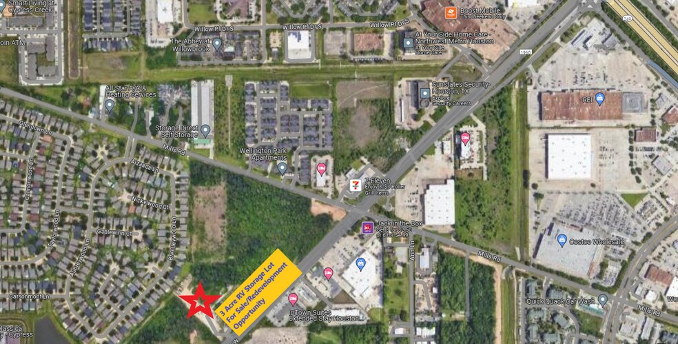 Terrain d'entreposage de VR existant en 1960 (alias Cypress Creek Pky) Cette propriété est stabilisée et clôturée et génère actuellement un revenu d'environ 5 000$ par mois. Le propriétaire a planifié un parc à bureaux de 20 000 pieds carrés pour ce projet et a récemment terminé les plans initiaux. La propriété est maintenant à vendre et offre une occasion rare d'acquérir Three Acres à un emplacement aussi privilégié le long de FM 1960. Beaucoup de nouveaux développements dans les environs immédiats ! Services publics à proximité... mais cette propriété se trouve toujours sur un puits « partagé » et une fosse septique avec les parcelles adjacentes.