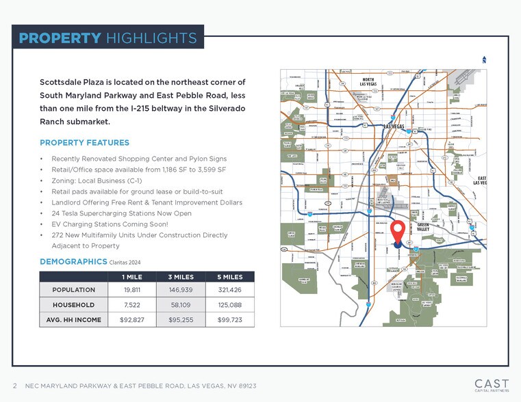 SCOTTSDALE PLAZA EST SITUÉE À L'ANGLE NORD-EST DE SOUTH MARYLAND PARKWAY ET EAST PEBBLE ROAD, À MOINS D'UN MILLE DE L'I-215 BELTWAY, DANS LE SOUS-MARCHÉ DU RANCH SILVERADO.