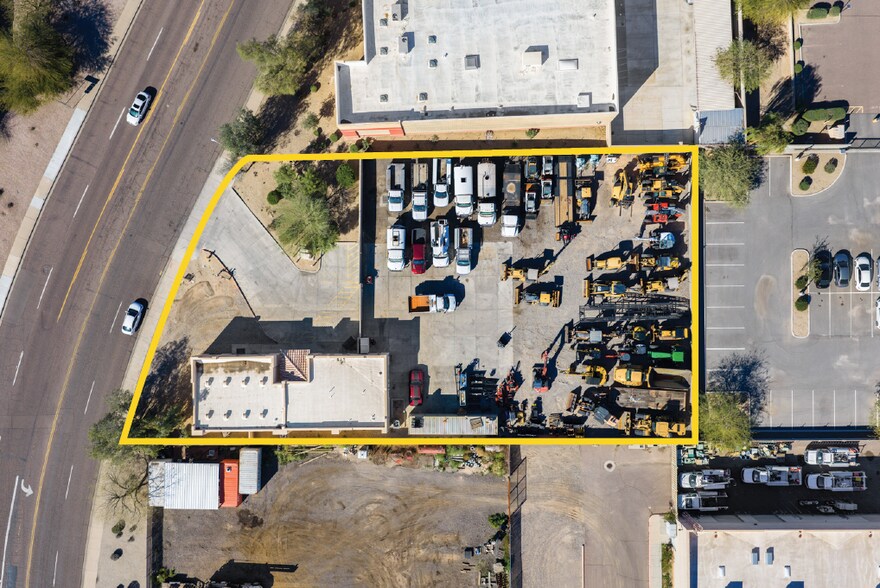 ±2,690 SF contractor facility on ±0.65 AC offered for sale at $1,350,000 in Peoria, AZ. The property features a fenced and secured yard with the majority of the site concrete paved — ideal for equipment staging, fleet storage, or contractor operations.