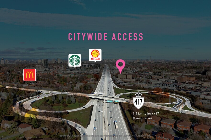 - Excellente connectivité avec un accès rapide à l'autoroute 417 et aux principales routes artérielles d'Ottawa pour une portée à l'échelle métropolitaine.