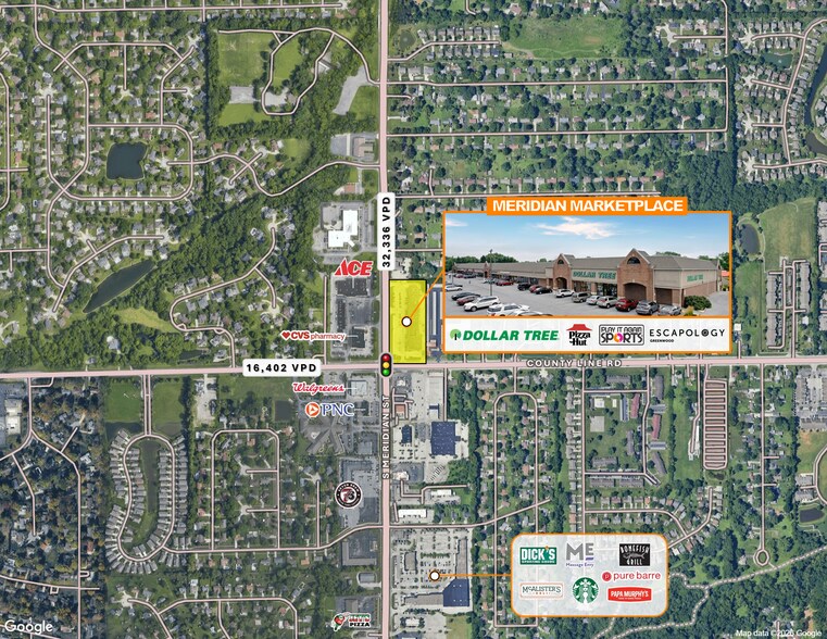 ?? A+ Real Estate at S.R. 135 and Countyline in the Greenwood Trade Area ?? Sandwiched between three major school corporations – Center Grove, Perry Meridian, and Greenwood. ?? Robust Parking