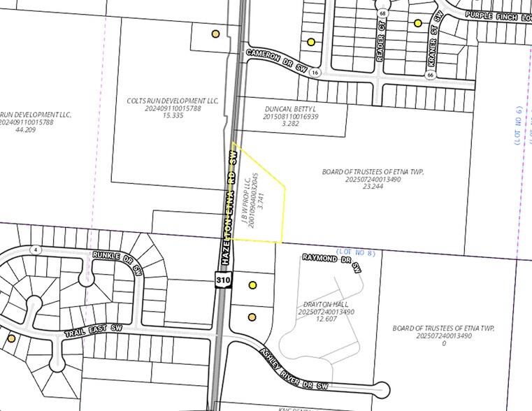 TERRAIN COMMERCIAL DANS L'ETNA ! Terrain commercial de 3,72 +/- acre sur la SR 310 entre le chemin Refugee et l'US 40. Adjacent à un futur développement unifamilial du côté ouest de la SR 310 et à un terrain du parc à l'est. PMUD zoné. Le commerce de détail environnant comprend un futur Sheetz au coin sud, Pataskala Bank, un centre d'apprentissage et un lave-auto.