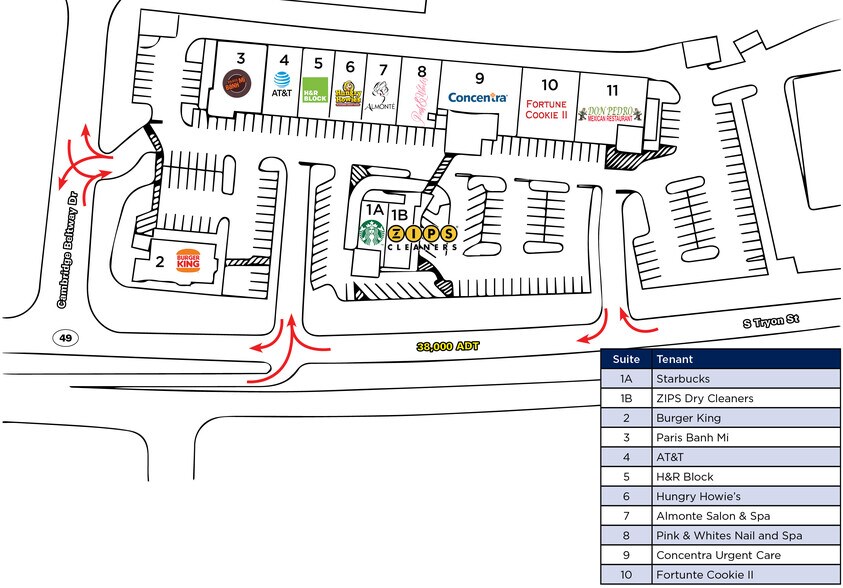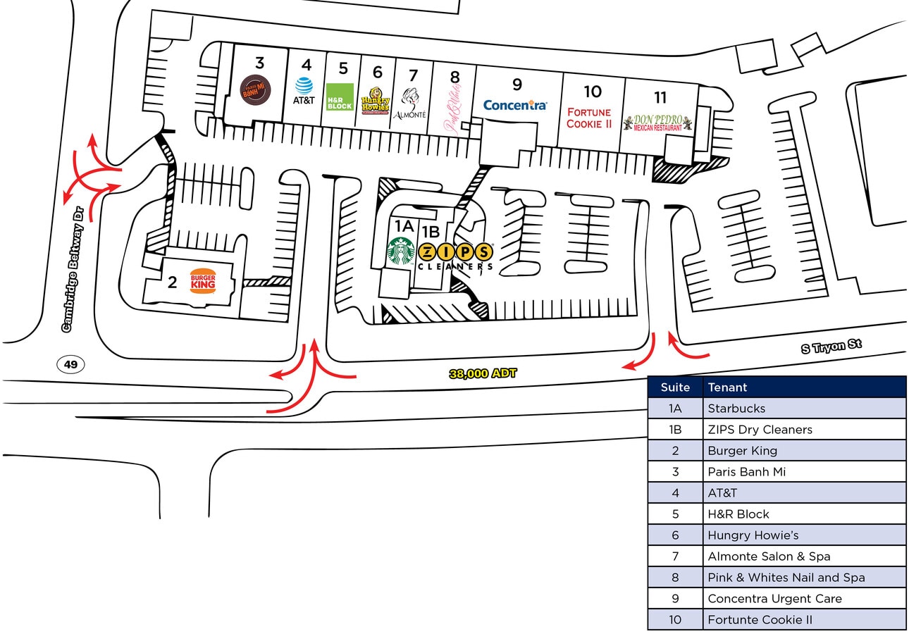 - Located along S Tryon Street with 38,000 vehicles per day (ADT)