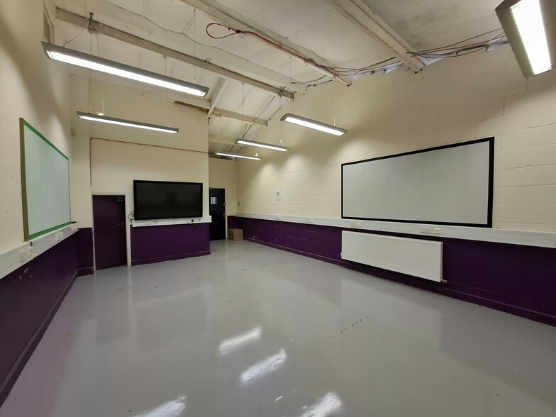 Mid terraced warehouse premises with two storey offices The property comprises a mid-terraced warehouse premises, including two storey offices to the front and a range of workshop and classrooms. The building has extensive frontage to Carden Street and benefits from a double loading door onto the road.