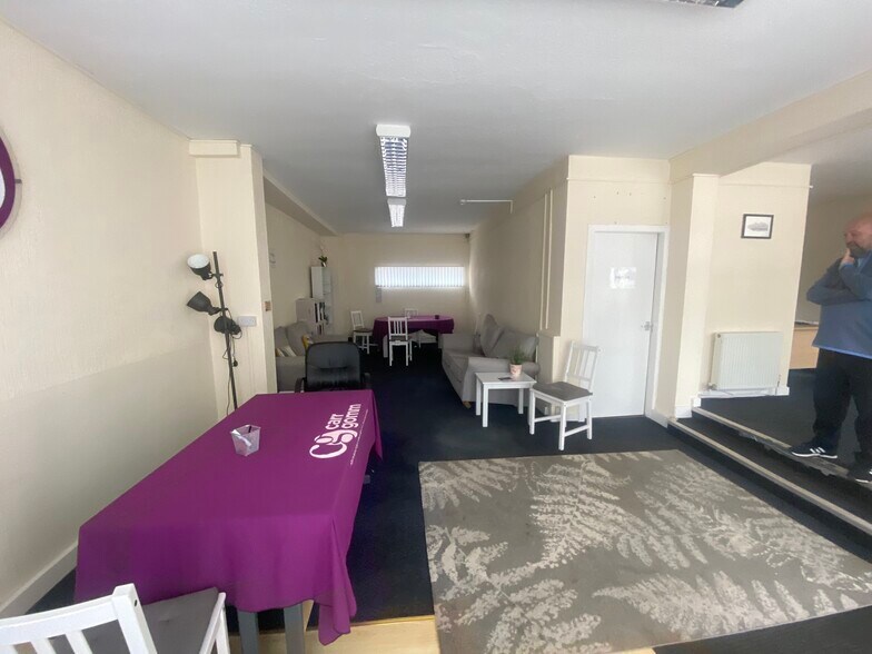À l'intérieur, le rez-de-chaussée comprend deux pièces bien proportionnées en plan ouvert avec un espace de préparation de thé, un débarras et des installations sanitaires à l'arrière. Le premier étage offre un espace de bureau supplémentaire, y compris une salle de conférence, de nombreuses salles de réunion, une salle du personnel et des installations sanitaires.