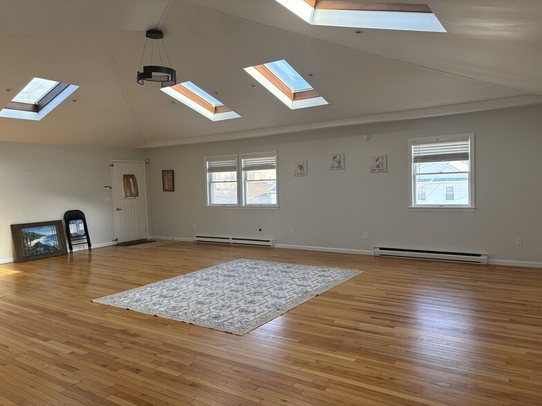 Large open space available for lease in a quiet Throop neighborhood. The property features two private offices, a kitchen, full bathroom, laundry area, and a spacious open room with vaulted ceilings and skylights. Access via both front and rear entrances to second level. Off-street parking included. The landlord is open to various business types and may allow use of the 7-bay garage on the main level - inquire for details. Convenient location near the highway with easy access to local businesses and amenities.