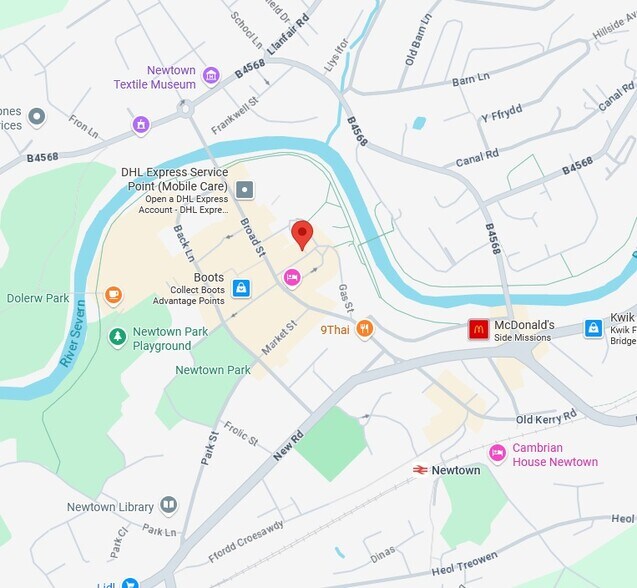 Newtown is the largest town in the county of Powys, located 13 miles south of Welshpool and 36 miles south-west of Shrewsbury. The town is situated on the River Severn at the junction of the A489 and the A483. Newtown (Powys) Rail Station provides frequent rail services to Birmingham International, Shrewsbury and Aberystwyth. The property is situated in the heart of the town centre with occupiers nearby include Costa Coffee, Nationwide and more.