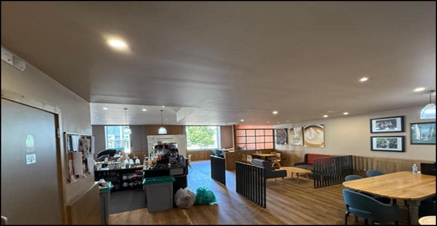 The subjects comprise a prominent corner unit spanning across ground and first floor, forming part of a larger three storey building. The subjects benefit from a dedicated pedestrian entrance point via Main Street. Internally, the premises are presented to a high standard benefitting from the existing tenant’s fit out as a Coffee Shop. The front of the unit features an open plan sale area benefitting from a combination of wooden and tiled floor coverings and a painted ceiling with spotlights incorporated throughout. The property also benefits from a first floor which can be accessed via an internal stairwell, offering ample storage space, a kitchen/prep area for staff and dedicated W/C facilities.