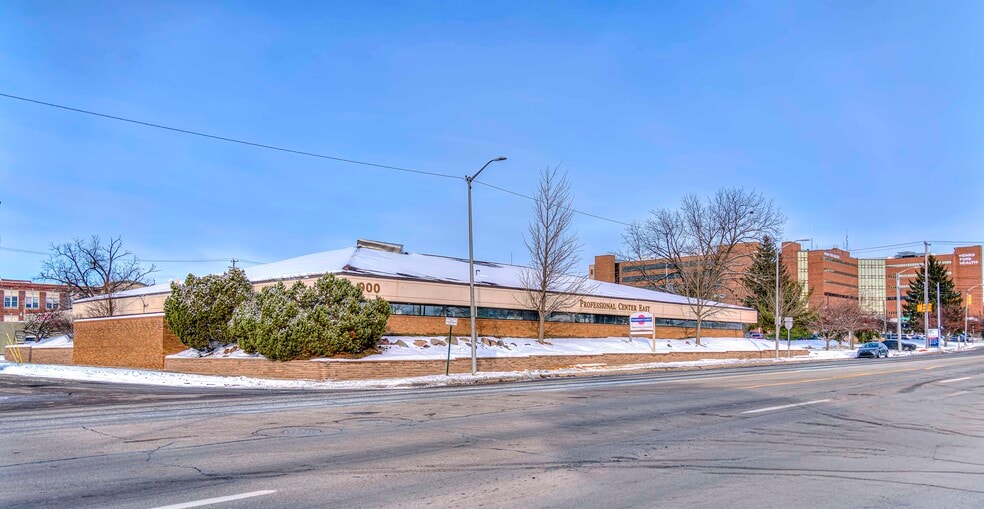 Professional Center East: 3 medical/professional office spaces available for lease in a prime, high-traffic location next to Henry Ford Hospital. ADA accessible with shared common areas; these well-designed suites are move-in ready and ideal for healthcare or professional practices. Each unit includes a welcoming waiting area, administrative space, multiple offices or exam rooms, and private restrooms. Exceptional visibility and convenience for both patients and staff.