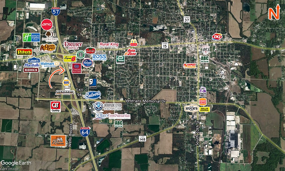 8,000 SF industrial/warehouse building on a 1.0 acre lot located on S. 45th St. between the I-57 / IL. Rt 15 interchange to the north and the I-57 /Veterans Memorial Parkway to the south. The property is zoned B-2 (Secondary Business) by the City of Mt. Vernon and is located in an Enterprise Zone. Building Overview: •8,000 SF warehouse includes 400 SF office/ restroom (Class B Industrial Bldg). •Steel frame structure, clear span. 12 ft ceiling height at eaves & 14 ft at center, sidewalls and roof insulated. Warehouse heated •One well loading dock (7’ W x 8’ H) •Four (4) drive-in doors (12’ W x 10’ H) •Located in fenced in area 1 acre lot Positioned at the convergence of I-57 and I-64, this 8,000 SF industrial warehouse on S. 45th Street offers a rare logistical advantage with immediate access to both Exit 94 and Exit 95. Few locations in Southern Illinois provide dual interstate access within a well-established industrial corridor built for efficient freight movement. With over 47,000 vehicles passing through the interchange daily—including 28–32% truck traffic—the area serves as a key north–south and east–west freight route. Located just 1.2 miles from Exit 95, the property minimizes last-mile travel and supports seamless distribution.