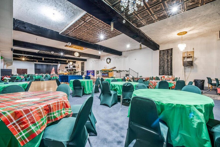 The building features a large ground-floor banquet and event hall, ideal for private events, corporate gatherings, performances, or community programming, complemented by flexible second-floor office suites well-suited for creative studios, coworking concepts, professional services, or boutique headquarters. The layout allows for multiple income streams and the potential to reposition or re-tenant based on market demand.