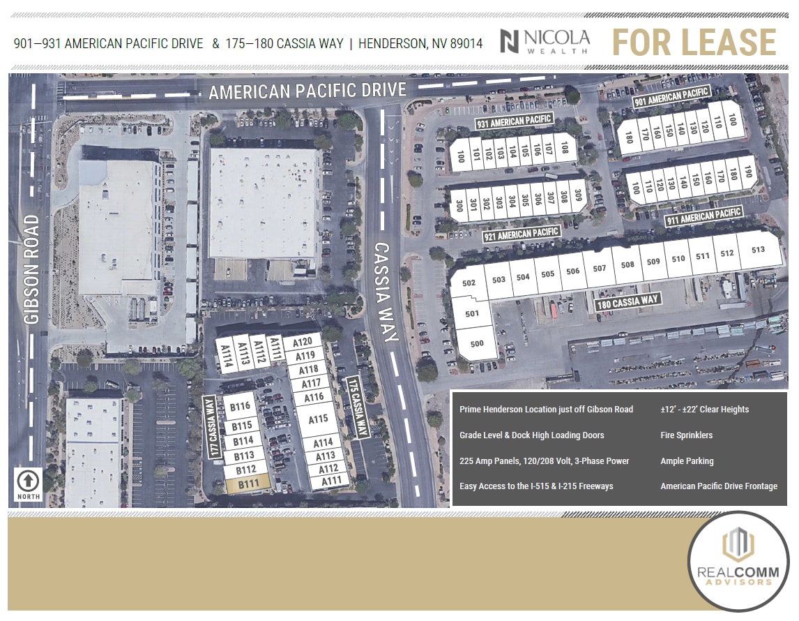 Le parc industriel Am Pac est situé à quelques minutes de l'autoroute I-215 par Gibson Road ou de l'autoroute I-515 par la promenade Auto Show Drive. La proximité du site avec plusieurs communautés résidentielles planifiées par le maître, un bassin de main-d'œuvre qualifiée, diverses commodités de vente au détail et emplacement dans la ville favorable aux affaires de Henderson en font un endroit idéal pour les entreprises qui ont besoin d'un nouvel emplacement. Entreprises notables dans le La région comprend Vadatech, Sofidel America, Touro University, Ocean Spray et Canamould Nevada.