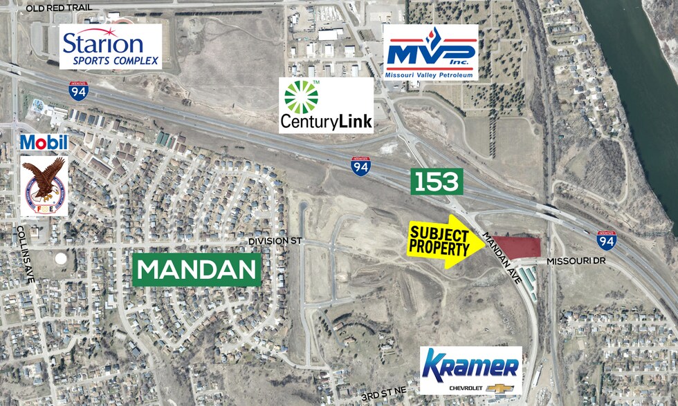 - Juste à côté de la sortie 153 de l'Interstate 94, le long de l'avenue Mandan NE
