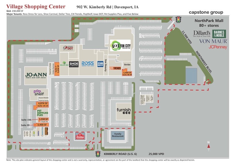 Suites de vente au détail disponibles au centre commercial Village. Situé à l'ouest du centre commercial NorthPark sur le chemin Kimberly très achalandé avec une grande visibilité. La propriété comprend des locataires nationaux, régionaux et locaux, y compris : Ross Dress for Less, Five Below, Pet Supplies, Furnish 123, JoAnn Fabrics, Dominos, Buddy's Home Furniture et bien d'autres.