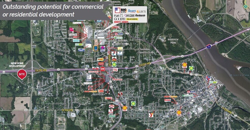 - 17,84 +/- acres de terrain non aménagé le long de la route 36 du MO dans la partie ouest de Hannibal - Facilement accessible depuis le chemin Veterans au chemin West Ely - Topographie boisée vallonnée située juste au sud et à l'est de l'aéroport régional de Hannibal et 1,5 mille à l'est du nouveau centre médical régional de Hannibal et du Hannibal Children's Medical Center - Potentiel exceptionnel de développement commercial ou résidentiel - Annexées dans les limites de la ville - Nouveau développement de quartier à venir directement de l'autre côté de l'autoroute 36