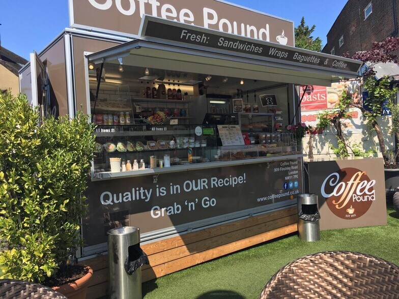 The premises occupy a prominent trading location opposite Golders Green Underground Station at the junction of Finchley Road with Golders Green Road. Nearby occupiers include Gail’s Bakery, The Refectory Pub and L’Artista Ristorante. The site comprises an area of approximately 1000 sq ft (92 sq m) with a frontage to Finchley Road of about 33 ft (10m). There are 3 existing F&B units on the site with outside seating, although the space can be modified to suit individual requirements.