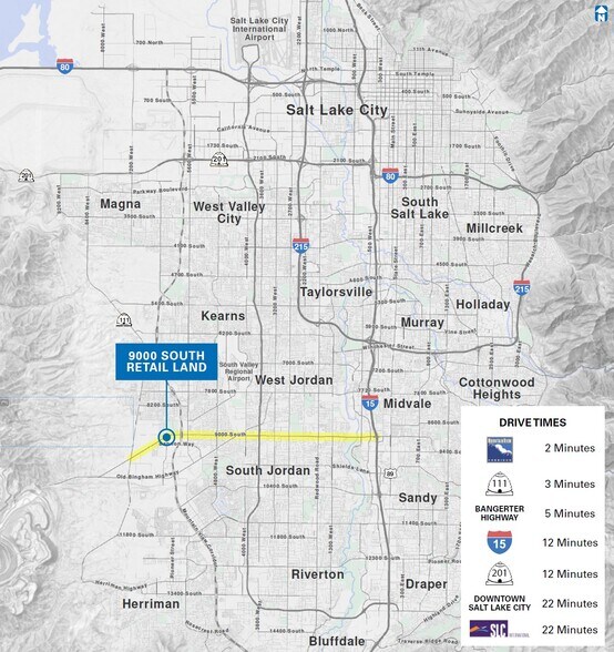 Property Highlights - 2.19 acres - APN: 26-02-300-041-0000 - Zoning SC-3 (Regional Shopping Center) - Surrounded by high density housing - High-income area - 18,000 cars/day on 9000 South - Minutes from South Valley Regional Airport - Easy Access to Mountain View Corridor, Bangerter Highway, I-15 via 9000 South