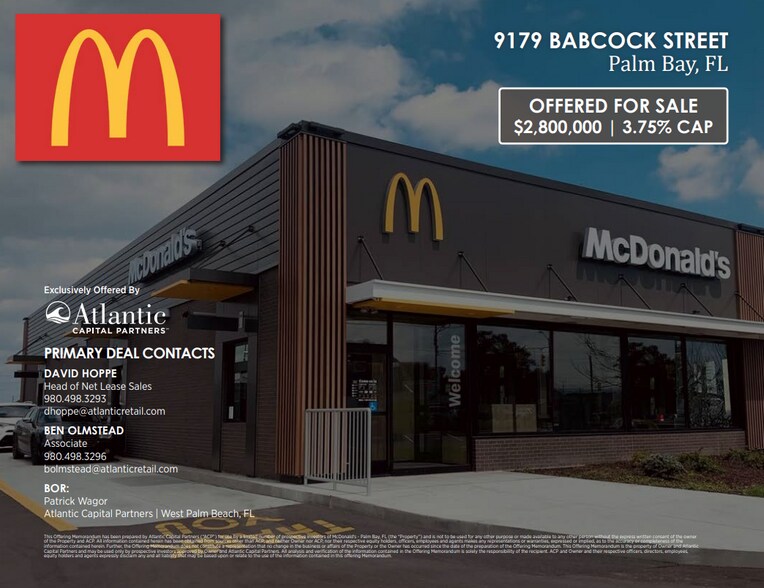 McDonald's 9113 Babcock St 4 395 pi² Commerce de détail Immeuble Palm Bay, FL 32909 3 841 600 $ CAD (874,08 $ CAD/pi²) 3,75% Taux de capitalisation