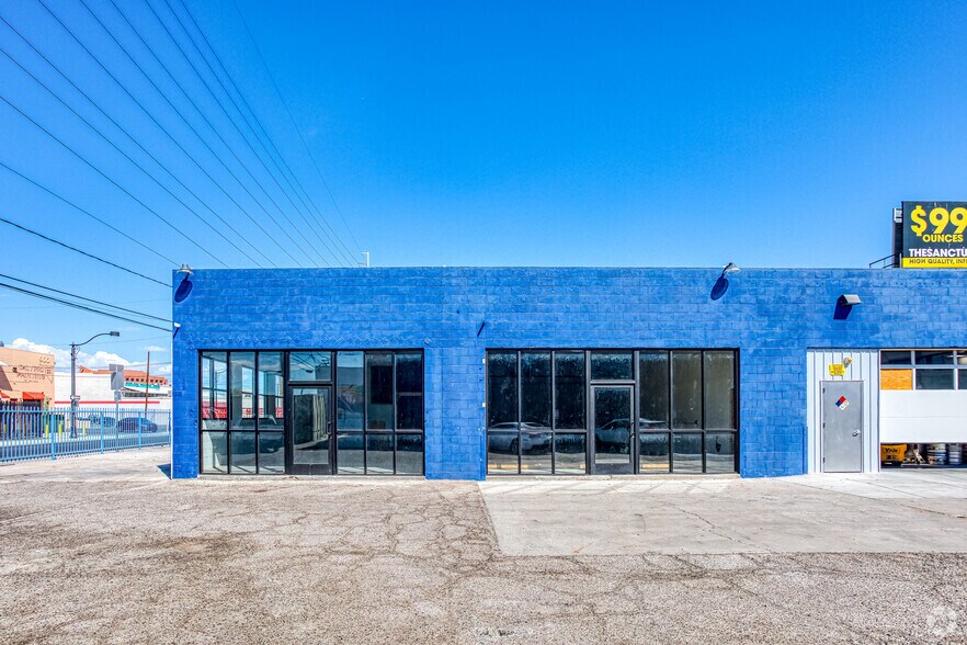 The building consist of showroom, three offices, three restrooms and three bay warehouse with one large and two smaller each with wide roll up doors. New concrete floor and roof. The yard is fenced and gated with access from Main and from Commerce St The property located on Main Street between Charleston and Downtown Las Vegas across from the under construction Z LIFE HOTEL. Downtown is going through redevelopment with number of exciting projects on the drawing board. Building is currently in the art district and unavailable for automotive. This building is best used for retail and/or restaurant.