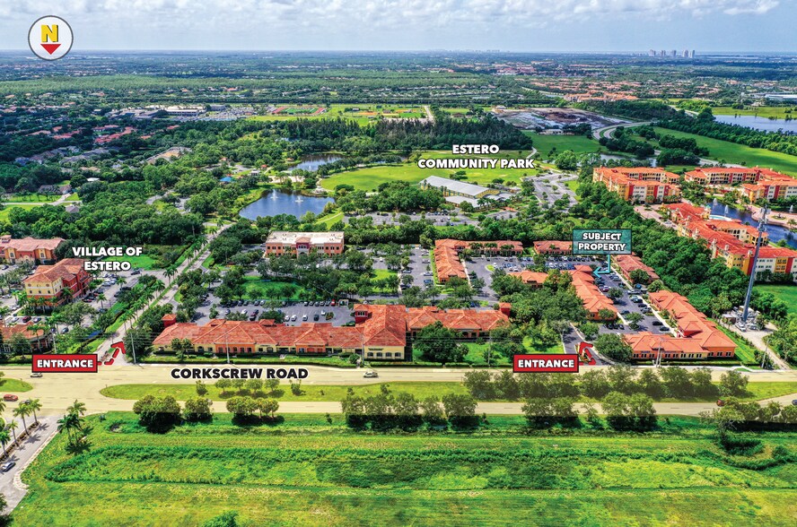 Bureaux aménagés situés à Estero Park Commons : 5 bureaux, aire de travail ouverte, salle de repos et salle de photocopieur et 2 toilettes. Accès direct au réseau de fibre optique. Situé juste à côté de Corkscrew Road avec un accès proche de l'I-75 et de l'US-41.