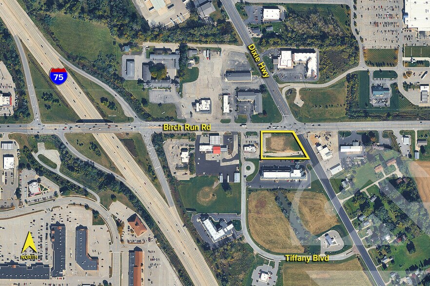 Terrain à vendre au coin signalisé de l'intersection très fréquentée du chemin Birch Run et de l'autoroute Dixie. En face du supermarché Meijer.