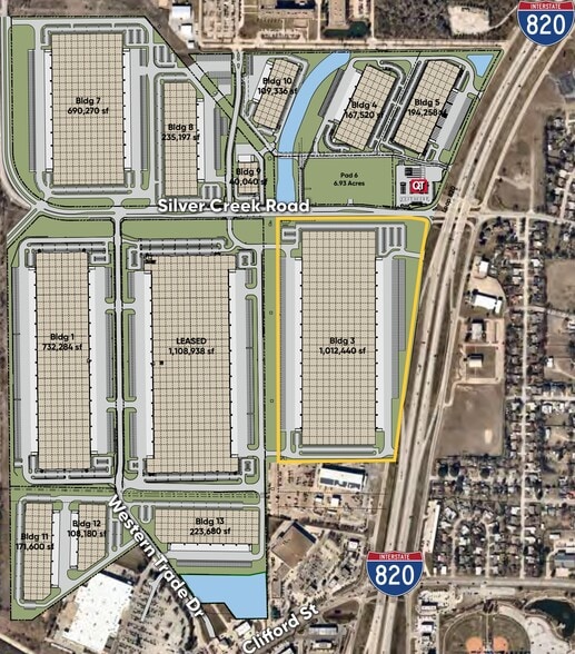 Bldg 3 9395 Silver Creek Rd 450 000–1 012 440 pi² d'espace disponible • Industriel • 5 étoiles • Fort Worth, TX 76108