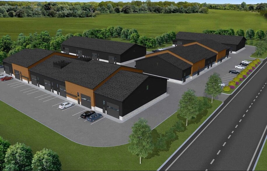 These are high-quality units that are decked out with 5” concrete floors w- floor drains & 20’ high ceilings - Commercial grade windows, entry door & garage door 14' wide x 14' tall - Attractive LP Smartside lap siding - Fire suppression with In floor radiant heating and you can add a split system for additional heating and / or cooling - All units are wired with 3 phase power and AC, plumbed w- water & sewer - Roughed-in bathroom.