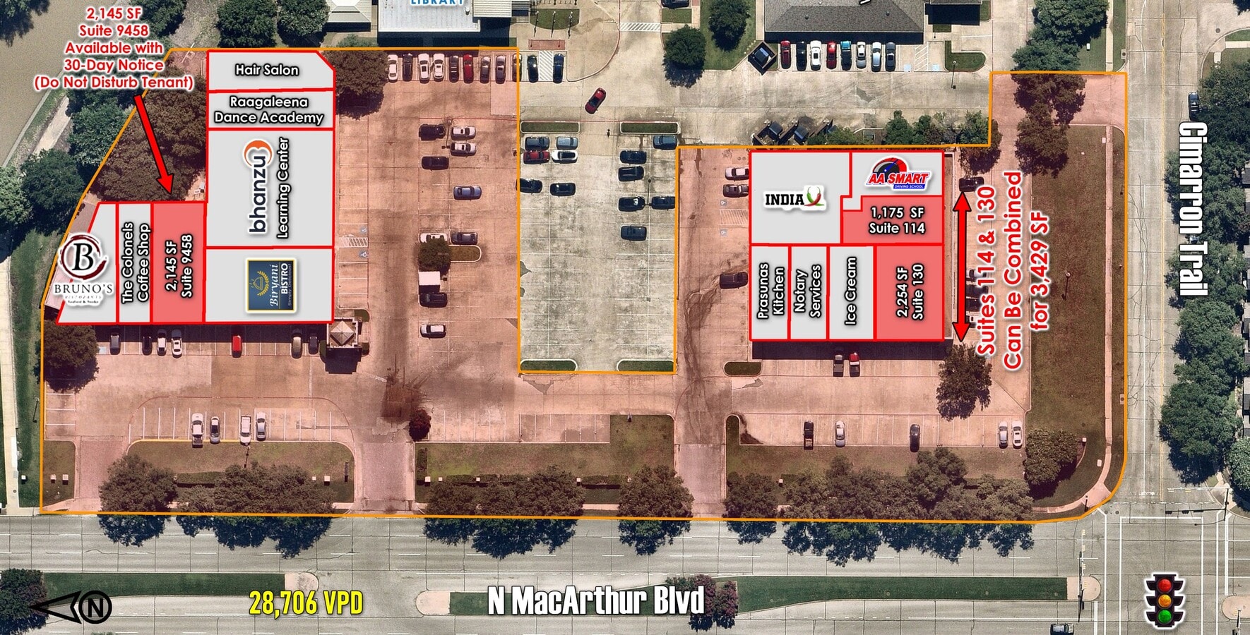 White box delivery, available now. Suites 114 & 130 can be combined for a total space of 3,429 SF.