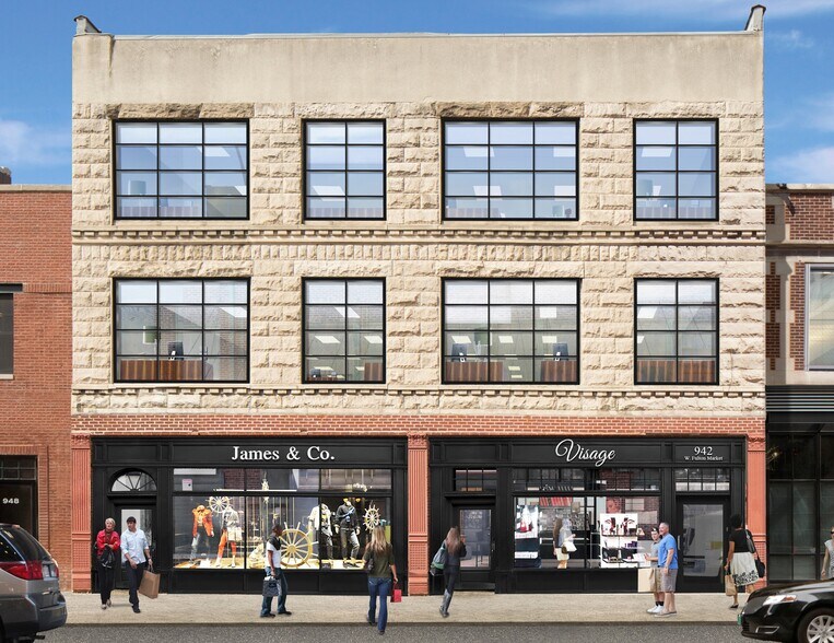 - 942-944 W. Fulton Market offre 16 000 SF répartis sur quatre niveaux d'espace de vente.