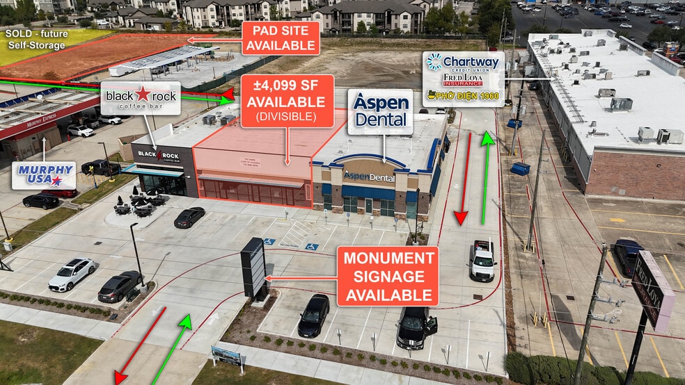 Emplacements de pavés ancrés Wal-Mart et espace de vente au détail pour les nouvelles constructions disponibles. Joignez-vous à Black Rock Coffee & Aspen Dental dans cette importante zone commerciale régionale. Entouré d'exploitants nationaux et régionaux, d'employeurs et de lotissements résidentiels établis. À moins d'un mille de l'US 59/Eastex Freeway, une artère importante de la MSA de Houston, et de l'aéroport intercontinental George Bush.