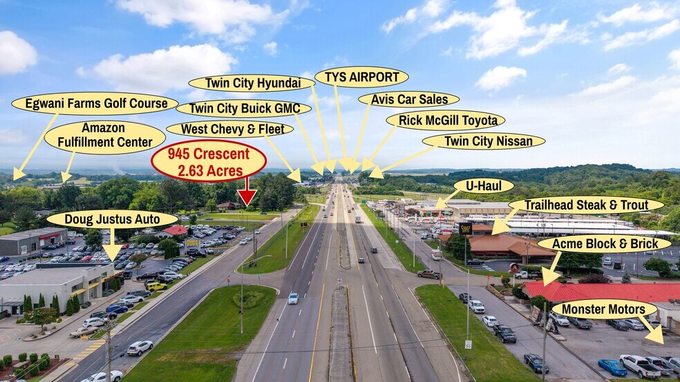Exceptionnel terrain de 2,63 acres près de l'aéroport Opportunité de développement commercial inégalée — 2,63 acres dans un corridor de croissance à haute vélocité. Stratégiquement situé à quelques secondes de l'intersection de l'autoroute 129 (Alcoa Highway) et de l'I-140 (Pellissippi Parkway), la propriété bénéficie d'un trafic quotidien combiné de près de 90 000 véhicules! Ce site de développement commercial de 2,63 acres offre l'une des opportunités immobilières les plus convaincantes de la région métropolitaine de Knoxville–Maryville. Les opportunités de cette envergure et à cet emplacement sont de plus en plus rares—agissez rapidement pour sécuriser une position de choix dans ce corridor en pleine expansion. Le 945 Crescent Drive est un site de développement commercial de 2,63 acres offrant une accessibilité, une visibilité et une connectivité exceptionnelles—exactement ce que recherchent activement les détaillants nationaux, les utilisateurs corporatifs et les opérateurs de services. Points forts de l'emplacement • Aéroport McGhee Tyson (TYS) : Environ 2,9 miles / 4 minutes. TYS a approuvé une expansion totale de 700 millions de dollars, incluant une réhabilitation de piste de 33 millions de dollars, un garage de stationnement de 86 millions de dollars, et de nombreuses améliorations d'infrastructure supplémentaires. • Centre de distribution Amazon : Ouvert en octobre 2024, situé à deux parcelles de la propriété en question. • Centre médical de l'UT : Environ 9,6 miles / moins de 15 minutes. • Université du Tennessee & centre-ville de Knoxville : Environ 11 miles / moins de 20 minutes. • Centre-ville de Maryville : Environ 6 miles / 12 minutes. • Corridor résidentiel et commercial haut de gamme de Northshore : Environ 8 miles / 10 minutes. • Corridor de Kingston Pike : Environ 11 miles / 14 minutes. • Accès aux autoroutes : • I-40 : À moins de 1 000 pieds • I-75 : Environ 13 miles / 18 minutes L'accès direct à Alcoa Highway (US-129) et Pellissippi Parkway (TN-162 / I-140) place ce site directement sur le chemin du flux de trafic régional continu, du mouvement de la main-d'œuvre et de la demande commerciale. La région environnante est ancrée par des employeurs majeurs, y compris Amazon Fulfillment & Logistics, DENSO Manufacturing, Smith & Wesson, Clayton Homes, Arconic, et Blount Memorial Hospital—générant une forte population active de jour, une base d'emploi stable, et une activité de consommation constante. C'est l'un des corridors de croissance commerciale les plus dynamiques de l'Est du Tennessee, avec une demande qui continue d'accélérer. Zonage et potentiel de développement • Zonage : Affaires générales (GB) • Permet une large gamme d'options de développement à usage optimal, y compris mais sans s'y limiter : • Commerce de détail à locataire unique ou multiple • Centres commerciaux de quartier ou de proximité • Terrains pour restaurants à service rapide et décontracté (y compris concepts avec service au volant) • Hébergement hôtelier ou motel • Bureaux professionnels, médicaux ou corporatifs • Développement commercial à usage mixte • Opérations de services ou de soutien industriel Les développeurs apprécieront la topographie favorable du site et la disponibilité des services et utilités municipales. C'est une opportunité idéale pour les investisseurs et développeurs recherchant des volumes de trafic élevés, une visibilité supérieure, et un potentiel de retour sur investissement à long terme solide. Alors que la région de Knoxville–Alcoa–Maryville continue son expansion rapide, des propriétés comme le 945 Crescent Drive deviennent de plus en plus rares.