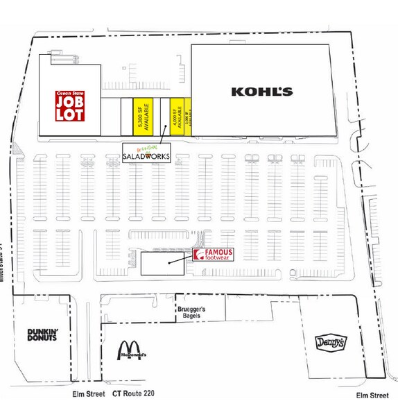La disponibilité de cette propriété à la location est assujettie à la location ou au retrait préalable de la propriété du marché en tout temps et sans préavis. Elm Plaza est situé à Enfield, Connecticut, à l'intersection de la rue Elm et de l'autoroute I-91. Les principaux locataires comprennent Kohl's et Best Buy.