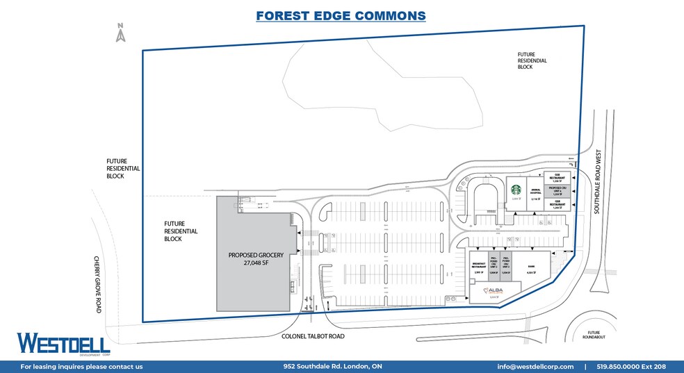 Projet de centre à usage mixte dans un endroit recherché, à proximité des autoroutes 401 et 402 du côté ouest de la ville. Le projet comprendra plus de 130 000 pieds carrés d'espaces commerciaux et résidentiels une fois entièrement construit.