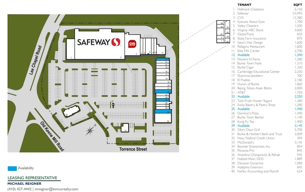 This 845 square foot office space at Burke Town Plaza is available for lease. Major tenants include CVS and Safeway plus other small shops. Burke Town Plaza has ample parking with 582 spaces and is located at Old Keen Mill Rd. & Lee Chapel Rd. in Burke, Virginia.