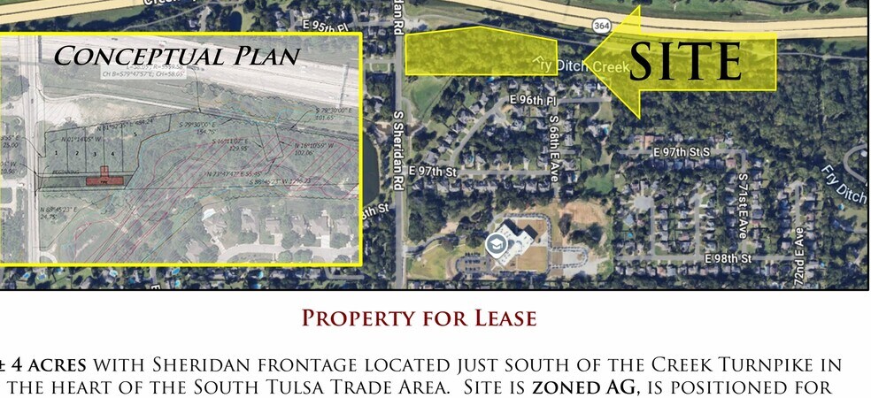 ± 4 acres with Sheridan frontage located just south of the Creek Turnpike in the heart of the South Tulsa Trade Area