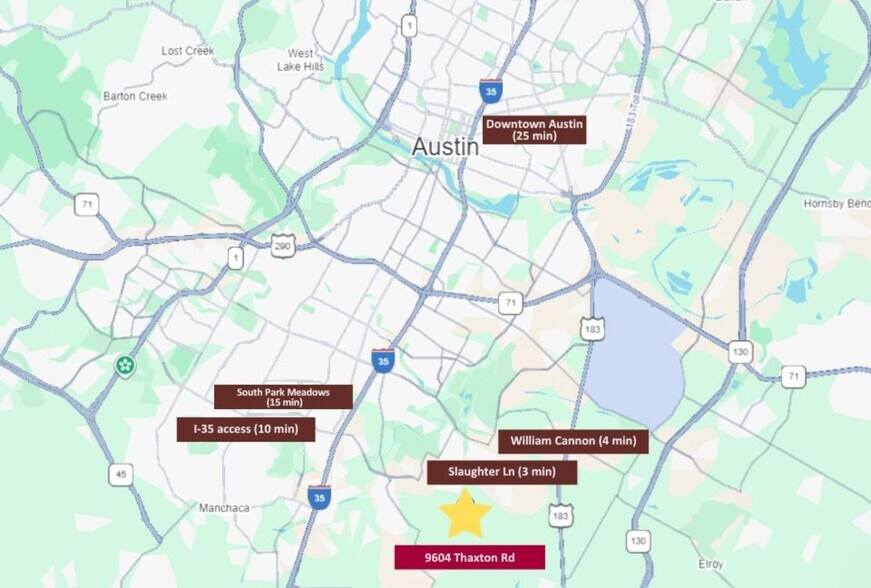 - Prime Access & Connectivity Conveniently located with easy access to Slaughter Lane, I-35, and William Cannon, providing strong connectivity