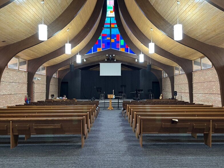 This expansive 16,500 sq. ft. church, situated on 6 acres, offers a wide range of features ideal for ministry, community use, or multi-purpose development. The main sanctuary seats 250 and is complemented by a large narthex/lobby, a small balcony with a spiral staircase, and a sacristy. Inside, you'll also find a gymnasium/dining hall, a commercial-style kitchen, a second residential kitchen, six restrooms, four offices, a conference room, a nursery, multiple classrooms, and a multipurpose room currently used for youth activities. The walkout basement provides even more usable space, and the property is equipped with a fire alarm system for added safety. With its size, layout, and amenities, this property offers tremendous potential for a church, private school, community center, or event facility., Expansive 16,500 sq. ft. church on 6 acres seats 250 with sanctuary, balcony, lobby & sacristy. Features a gym/dining hall, commercial & residential kitchens, classrooms, offices, a nursery, a conference room & walkout basement. Versatile property for church, school, or community use.