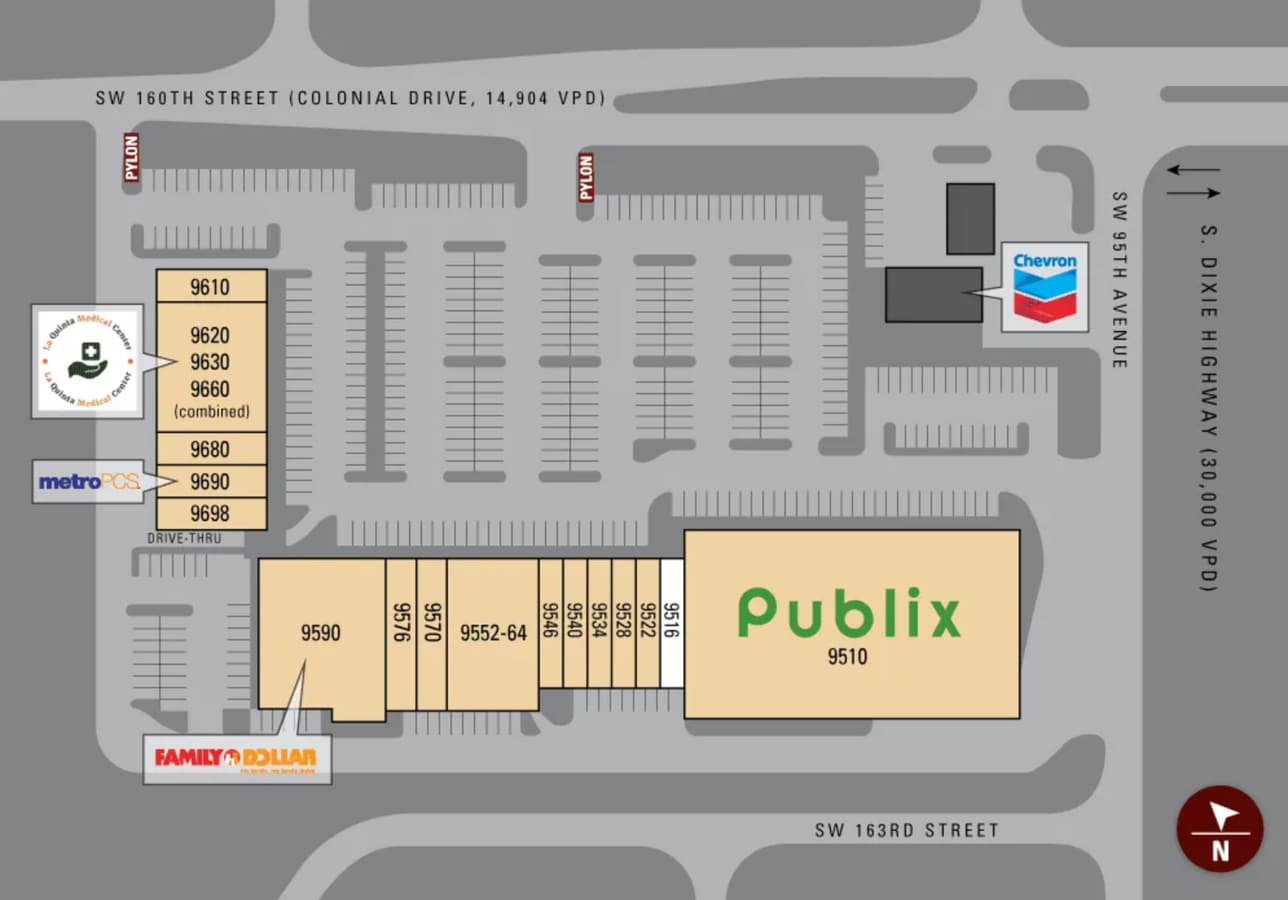 Colonial Shopping Center 9610 SW 160th St 1 340 pi² d'espace disponible • Commerce de détail • Miami, FL 33157