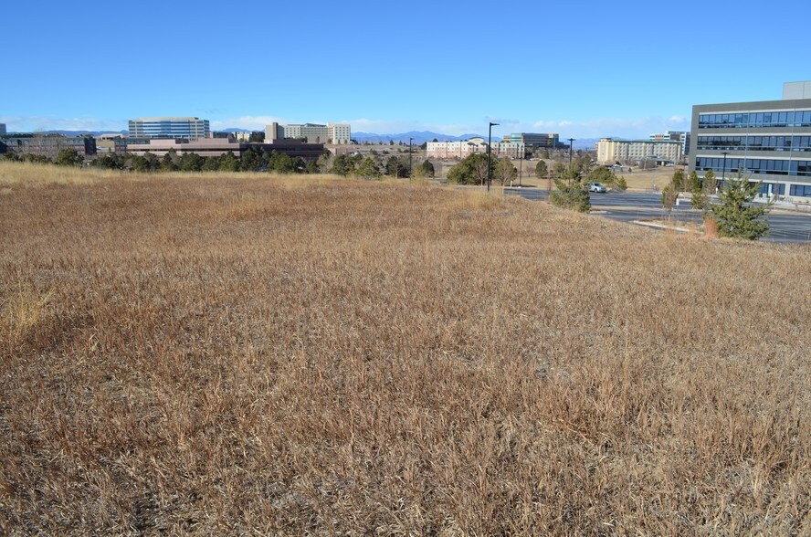 Premier +/- 5 acres (divisible) à vendre au Meridian Office Park. Retours au terrain de golf conçu par Jack Nicklaus, vue sur les montagnes Rocheuses et situé au centre de l'intersection des autoroutes 25 et 470. Ensemble complet de forfaits disponibles pour l'acheteur.