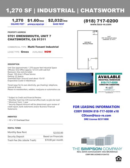 CHATSWORTH WEST ONE 9701 Owensmouth Ave 1 270–5 081 pi² d'espace disponible • Industriel • Chatsworth, CA 91311