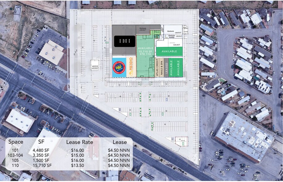 Ce centre commercial est situé au cœur de la partie nord-est de la ville d'El Paso. Un accès facile et une sortie et un emplacement idéal. Les détaillants de la région comprennent Rent-a-Center, Autozone, Lube n'Go, Pets Barn, Family Dollar, Dollar General, Big 5 Sporting Goods et plus encore. L'avenue Dyer est le corridor commercial le plus achalandé de la partie nord-est d'El Paso. Fort Bliss se trouve à quelques minutes à peine de la route américaine et du chemin Transmountain, ce qui a eu des répercussions sur El Paso en raison de la croissance de la population militaire. La propriété est entourée de développements résidentiels et commerciaux.