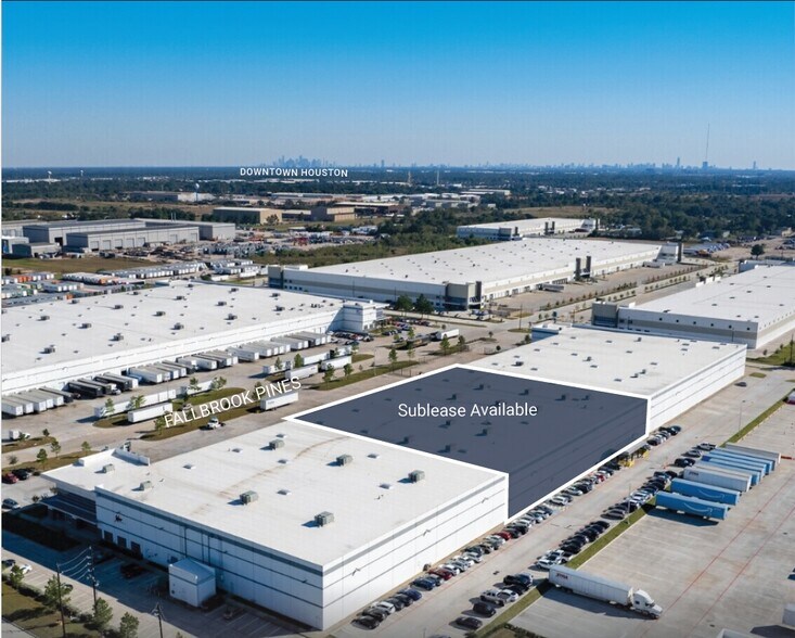 The property is an industrial warehouse located at 9851 Fallbrook Pines Drive in Houston, Texas. It offers approximately 60,000 square feet of space, including office build-out. The building has a clear height of 32 feet, multiple dock-high doors, and one drive-in ramp. It includes ESFR sprinklers, a 140-foot truck court, and column spacing of 52 by 45 feet. The site is outside the 100-year floodplain and includes temperature control throughout the warehouse.