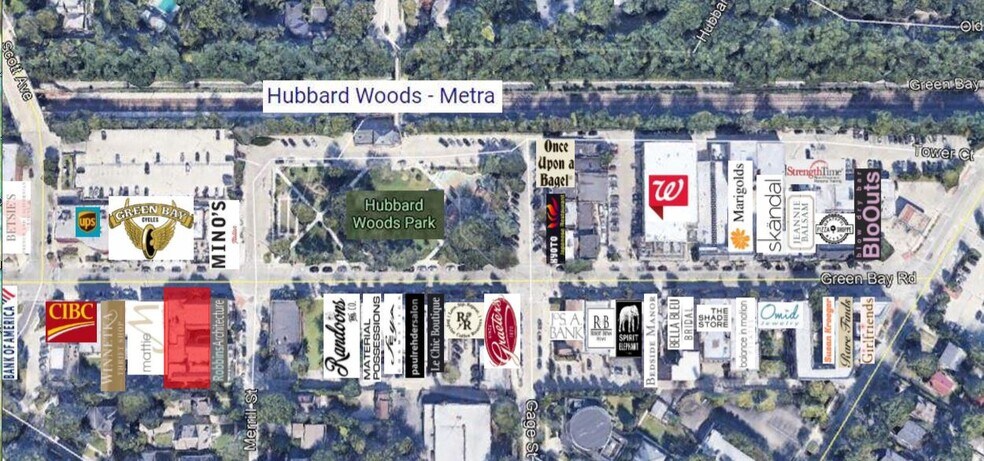 - Directement en face de l'arrêt Hubbard Woods Metra