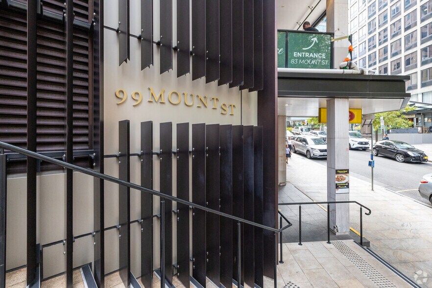 99 Mount Street is a mixed-use commercial building located on the corner of Walker Street and Mount Street. The building contains office and retail space and is in a prominent location in North Sydney.